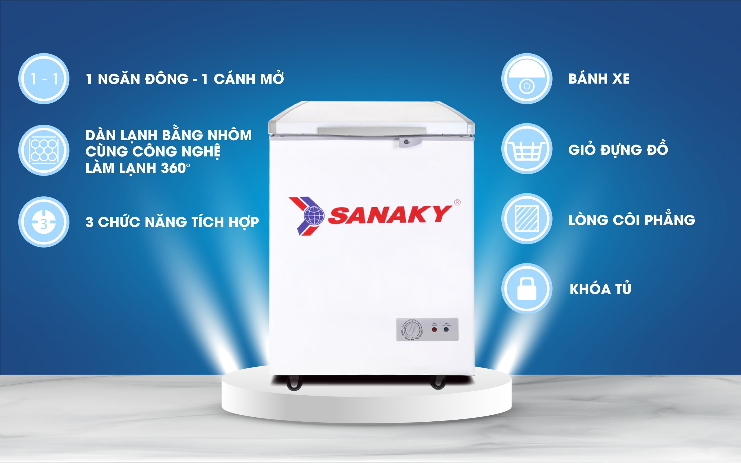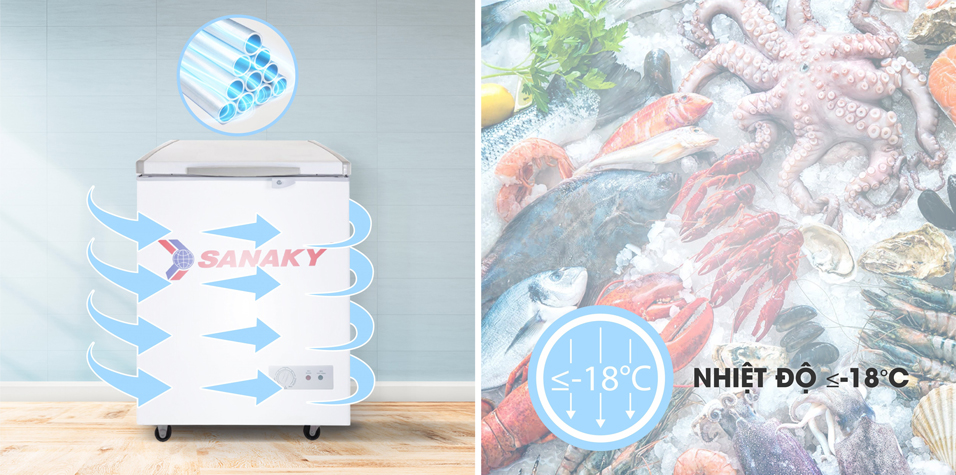 Tủ đông sanaky VH 150HY2, 100 lít, 1 ngăn đông, dàn lạnh nhôm