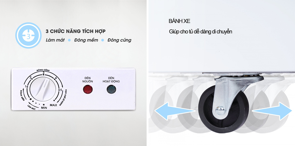 – Tủ đông Sanaky VH-150HY2 được thiết kế với 1 ngăn đông thông suốt 1 cửa. Tủ trang bị bánh xe chịu lực, giúp bạn có thể dễ dàng di chuyển.